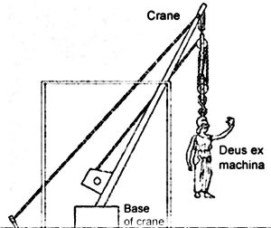 これが現代になっては意味が少しかわり、言葉通りの"神"ではなく、いきなり現れた万能キャラや事件を意味する事に変わります。このデウスエクスマキナが現れた時点で、作品の中のすべての問題は簡単に解決されるてしまいます。ただし、デウスエクスマキナかどうかを定める基準はあります。